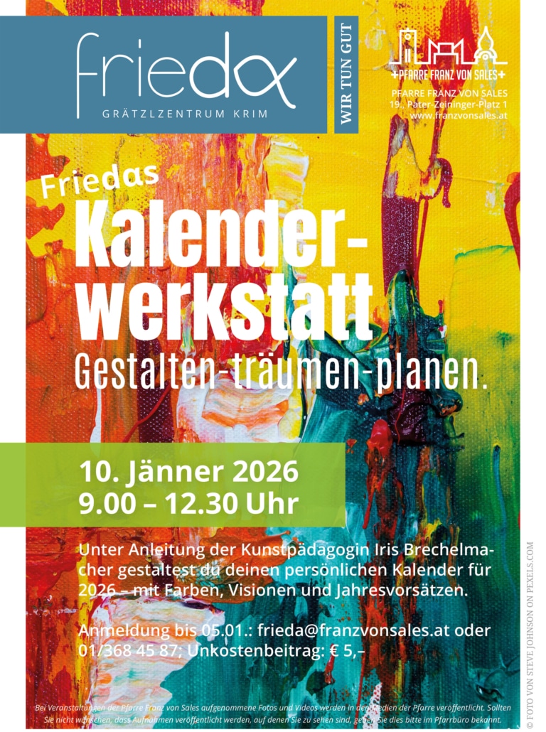 Anmeldung bis 05.01.: frieda@franzvonsales.at oder 01/368 45 87; Unkostenbeitrag: € 5,–