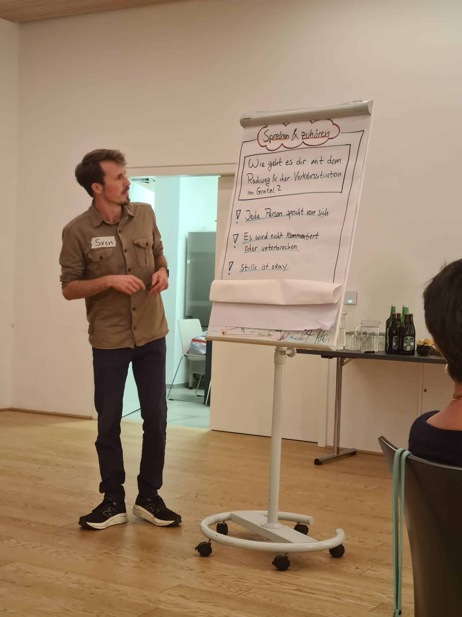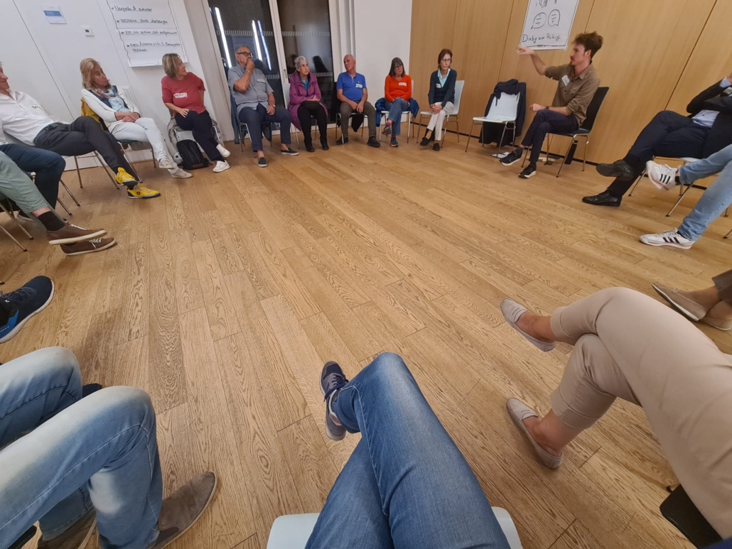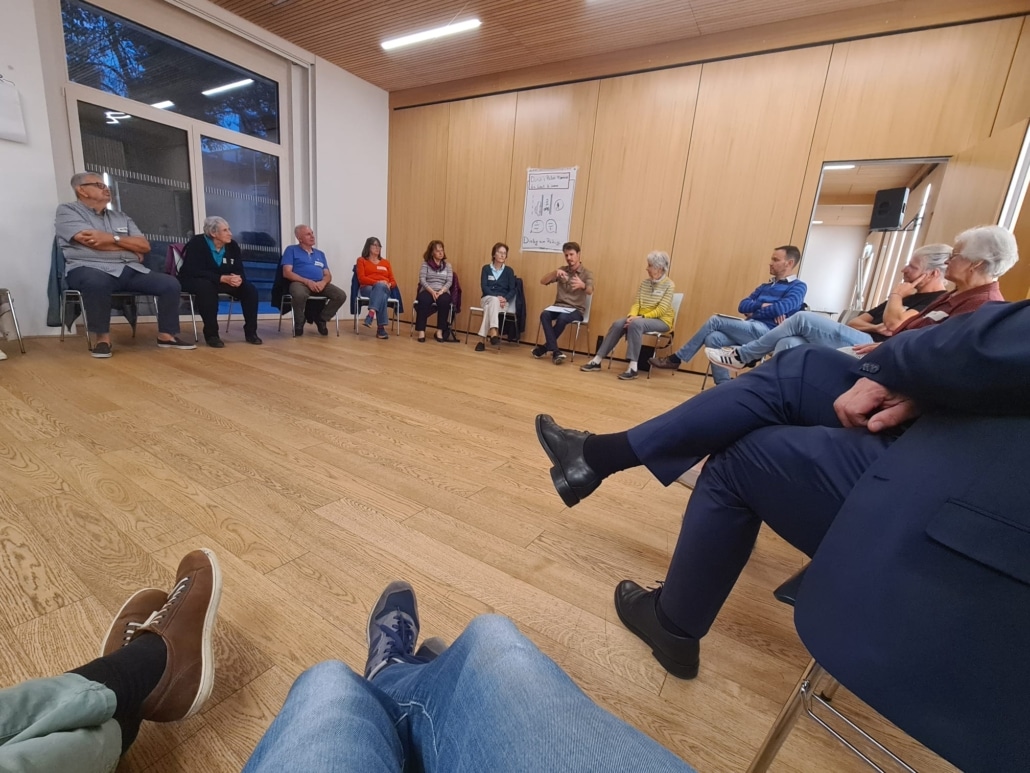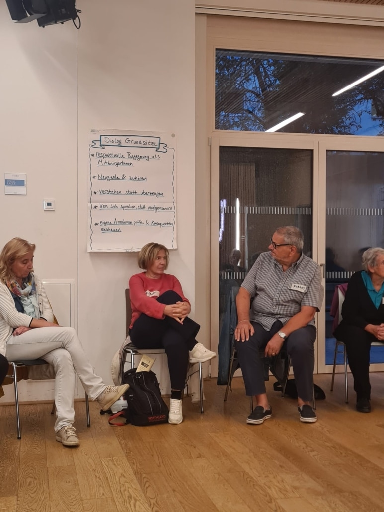 Rund um das Thema „Radweg Krottenbachstraße“, das starke Emotionen hervorruft, führten 25 Menschen mit sehr diversen Meinungen am Dienstag, 23. September 2025, im Grätzlzentrum Friedα Krim einen Abend lang unter professioneller Moderation einen profunden Dialog unter Andersdenkenden. Die beispielgebenden Gespräche bestärkten die Teilnehmer:innen sehr, weil sie zeigten: Wenn man einander wirklich zuhört, sind die Gräben gar nicht so tief, wie sie scheinen.