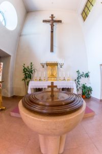 Betritt man durch den Haupteingang eine Kirche, so fällt der Blick normalerweise auf das Zentrum dieses heiligen Raumes – auf den Altar! Jeder sakrale Raum braucht eine Mitte. Der Altar ist eigentlich ein Symbol der Weltmitte; in ihm wird die Weltachse sichtbar, die das Oben mit dem Unten, den Himmel mit der Erde verbindet. Daher zeichnet den Altar, den Mittelpunkt der Danksagung in der Eucharistiefeier als den Tisch, auf dem Jesus Christus in den Gestalten von Brot und Wein gegenwärtig wird – wie den Menschen auch – eine besondere Würde aus. Als Gottes Thron oder als Ort, an dem Gott uns Menschen berührt, will der Altar im Gotteshaus einladen, sich Gott zu nähern und ihm für die Schöpfung und alles Leben auf ihr zu danken.